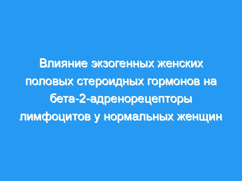Влияние экзогенных женских половых стероидных гормонов на функцию бета-2-AR лимфоцитов было изучено у восьми нормальных здоровых женщин.