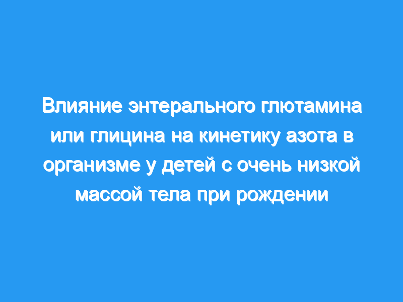 Энтерально вводимый глютамин у растущих недоношенных детей полностью метаболизируется в кишечнике и не оказывает заметного влияния на кинетику белка и азота в организме.