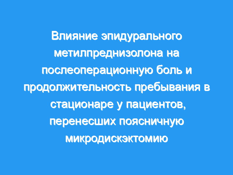 Предпосылки и цель: Интраоперационные эпидуральные кортикостероиды использовались для уменьшения послеоперационной боли после дискэктомии. Целью данного исследования является оценка эффективности эпидуральных кортикостероидов в отношении послеоперационной боли и продолжительности послеоперационного пребывания в стационаре у пациентов, перенесших одностороннюю поясничную микродискэктомию.