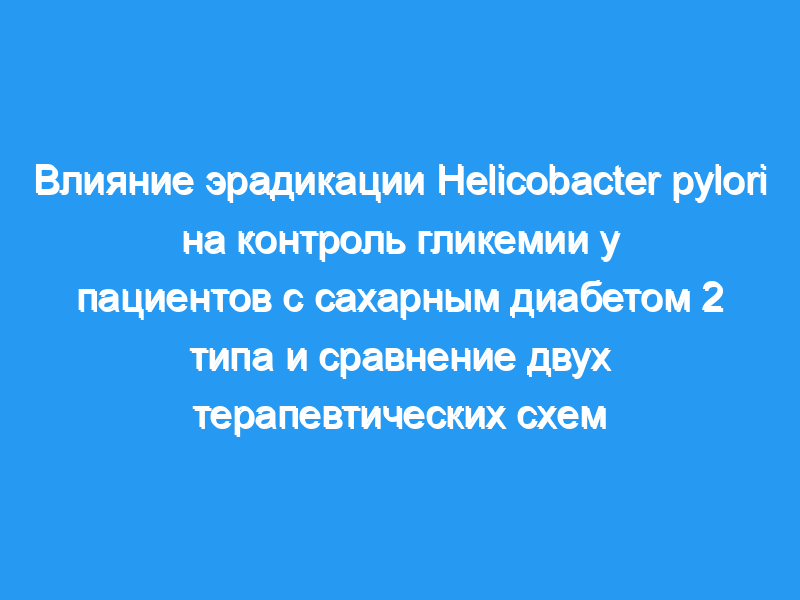 Предпосылки и цели исследования: Сообщалось, что скорость эрадикации Helicobacter pylori (H. pylori) у пациентов с сахарным диабетом (СД) 2 типа ниже, чем у пациентов без СД. Целью исследования была оценка эффективности двух схем эрадикации H. pylori у пациентов без СД 2 типа и с СД 2 типа, а также изучение влияния лечения H. pylori на контроль гликемии. Пациенты и методы: В общей сложности было включено 93 последовательных пациента с СД 2 типа (не употребляющих инсулин) и 98 пациентов без диабета, соответствующих возрасту и полу. Пациенты были рандомизированы на один из двух протоколов лечения, которые назначались дважды в день: (а) 14-дневная четырехкратная терапия, включающая омепразол 20 мг, метронидазол 500 мг, амоксициллин 1 г и субцитрат висмута 240 мг (OMAB) и (б) 14-дневная тройная схема, включающая омепразол 20 мг плюс кларитромицин 500 мг и амоксициллин 1 г (ОСА). Излечение определяли как отрицательный (13) дыхательный тест на С-мочевину по крайней мере через 6 недель после лечения.