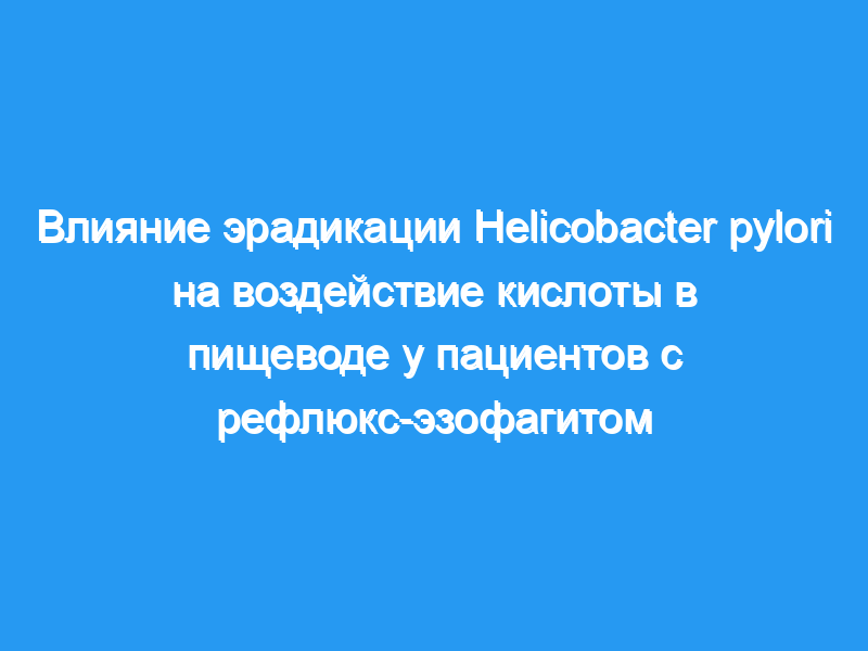 Изучить влияние эрадикации H. pylori на воздействие кислоты в пищеводе и тяжесть заболевания у пациентов с рефлюкс-эзофагитом.