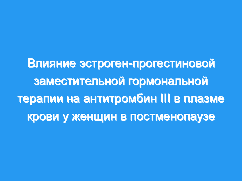 Это исследование было проведено для оценки уровня антитромбина III у женщин в постменопаузе, получающих заместительную гормональную терапию.
