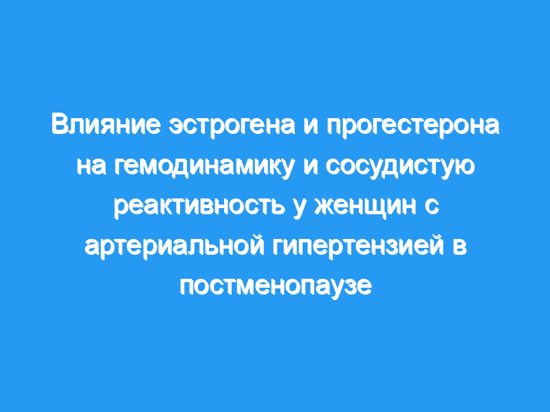 Изучить среднесрочное влияние терапии эстрогеном и прогестероном (EPT) на реактивность сосудов, функцию эндотелия и гемодинамические реакции у 20 женщин с артериальной гипертензией в постменопаузе.