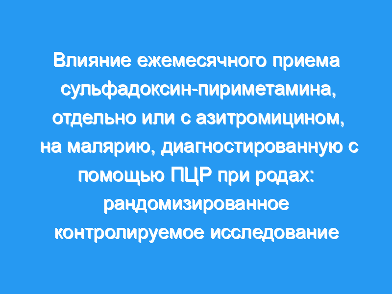 В этом исследовании были проанализированы 484 образца, собранные при родах в рамках рандомизированного, частично плацебо-контролируемого клинического исследования, проведенного в сельской местности Малави в период с 2003 по 2007 год. В исследование были включены беременные женщины независимо от их тяжести или статуса ВИЧ-инфекции. Участники получали SP дважды (контрольная группа), ежемесячно SP или ежемесячно SP и две дозы азитромицина (AZI-SP). Основным результатом была распространенность периферической малярии Plasmodium falciparum при родах, диагностированной с помощью анализа полимеразной цепной реакции (ПЦР) в реальном времени. Выводы: Общая распространенность периферической малярии P. falciparum, диагностированной с помощью ПЦР, при родах составила 10,5%. По сравнению с контрольной группой, у участников ежемесячной группы SP коэффициент риска (95% ДИ) составил 0,33 (от 0,17 до 0,64, P<,0,001), а у участников группы AZI-SP — 0,23 (от 0,11 до 0,48, P<,0,001) для малярии при родах. Когда анализировались только ВИЧ-отрицательные участники, соответствующие показатели составили 0,26 (от 0,12 до 0,57, P<,0,001) для женщин в группе ежемесячного SP и 0,24 (от 0,11 до 0,53, P<,0,001) для женщин в группе AZI-SP.