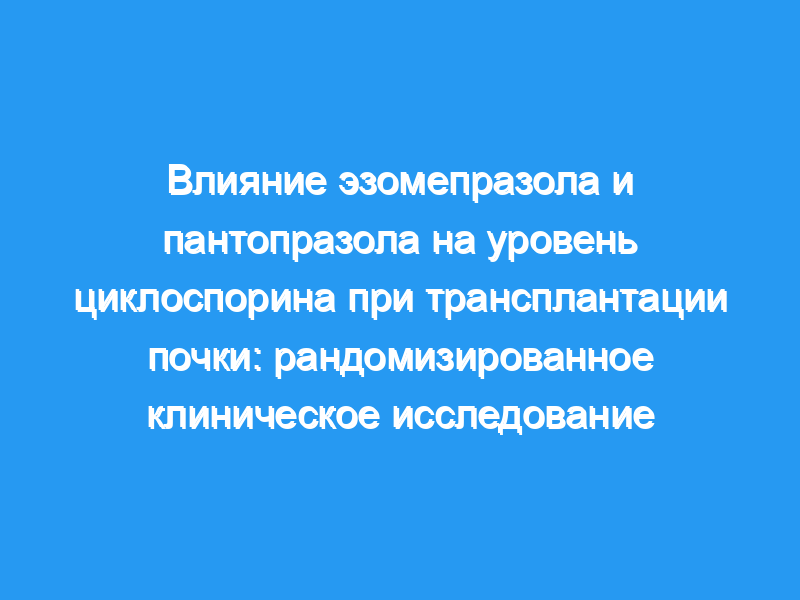 Эта стратегия может привести к желудочным осложнениям, которые требуют применения желудочно-защитных препаратов, в частности ингибиторов протонной помпы (ИПП). Целью данного исследования было сравнить влияние пантопразола и эзомепразола на минимальные уровни циклоспорина в сыворотке крови (C0) у реципиентов почечного трансплантата (RTR). Проспективное параллельное открытое исследование было проведено на 47 взрослых РТР, получавших циклоспорин в дозах, скорректированных для достижения минимальных концентраций от 100 до 150 мкг/л, микофенолата мофетила (ММФ) в дозе 750 мг каждые 12 часов и преднизолон в дозе 5 мг ежедневно в Институте Насера, Каир, Египет, с января по сентябрь 2016 года. Пациенты были рандомизированы в группу эзомепразола (25) или группу пантопразола (22), получавших ту же дозу (40 мг один раз в день). Результаты исследования включали клинические признаки отторжения и снижение функции почек, оцениваемые по повышению уровня креатинина в сыворотке крови, вызванному колебаниями уровня циклоспорина в любой из двух исследуемых групп.