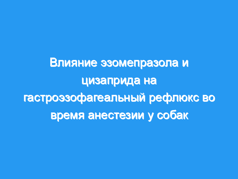 У восьми из 21 собаки в группе плацебо (38,1%), у 8 из 22 собак в группе эзомепразола (36%) и у 2 из 18 собак в комбинированной группе эзомепразола и цизаприда (11%) был ≥ 1 эпизод ГЭР при импедансном тестировании во время анестезии (P <, 0,05). Эзомепразол был связан со значительным повышением рН желудка и пищевода (Р = 0,001), но препарат существенно не снижал частоту ГЭР (Р = 0,955). Одновременное применение цизаприда было связано со значительным снижением числа случаев рефлюкса (RE) по сравнению с группами плацебо и эзомепразола (P <, 0,05). Выводы и клиническая значимость: Преданестезическое введение цизаприда и эзомепразола уменьшает количество РЭ у собак, подвергшихся анестезии, но введение только эзомепразола было связано с некислым и слабокислым рефлюксом у всех собак, кроме 1 собаки.