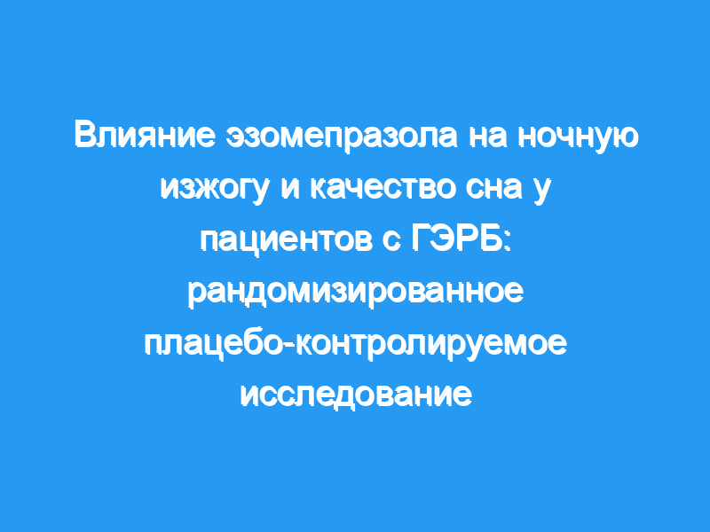 Эзомепразол уменьшал ночную изжогу и связанные с ГЭРБ нарушения сна, а также улучшал качество сна и производительность труда.