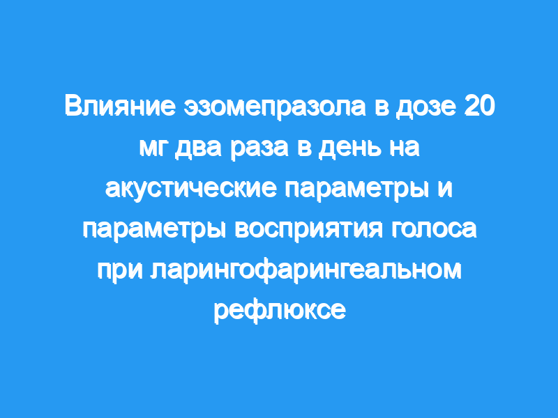 Рандомизированные плацебо-контролируемые исследования не смогли продемонстрировать значительного эффекта лечения ларингофарингеального рефлюкса (ЛПР) с использованием традиционных клинических конечных точек. Мы сравнили влияние эзомепразола в дозе 20 мг два раза в день (внутривенно) по сравнению с плацебо на голосовые и акустические показатели у пациентов с ЛПР.