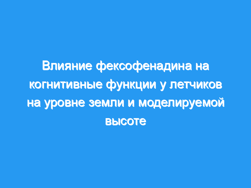 Когнитивные эффекты фексофенадина сравнивались с плацебо (пассивный контроль) и цетиризином (активный контроль) у здорового летного состава ВМС. Все испытуемые получали по одной дозе каждого лечения в одной из шести возможных последовательностей с двумя периодами вымывания между ними, и были оценены на когнитивные навыки, связанные с авиацией, с использованием теста аэромедицинской бдительности (AVT) как в условиях окружающей атмосферы, так и в условиях нормобарической гипоксии. Участники самостоятельно оценивали сонливость с помощью визуальной аналоговой шкалы (ВАШ).