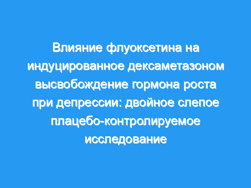 Цель авторов состояла в том, чтобы охарактеризовать влияние лечения флуоксетином на индуцированные дексаметазоном реакции гормона роста (GH) у пациентов с депрессией. Способ: Двенадцати пациентам (шести женщинам и шести мужчинам) с тяжелой депрессией, диагностированной в соответствии с DSM-III-R, была проведена индуцированная дексаметазоном стимуляция гормона роста до и после случайного назначения на 4 недели лечения либо плацебо (N = 6), либо флуоксетином (N = 6).