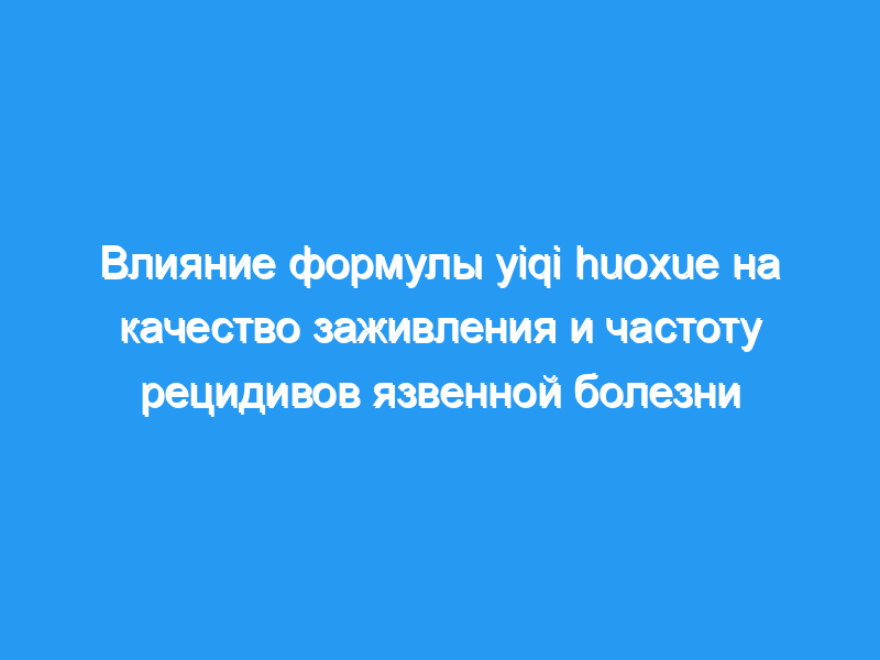 Изучить влияние формулы ици хуосюэ (YHF) на заживление и рецидивирование язвенной болезни.