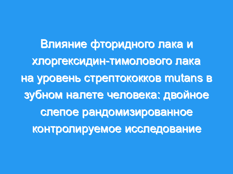 Сравнить влияние фторидного лака (F) и хлоргексидин-тимолового лака (CHX/T) при интенсивном режиме нанесения на уровни mutans streptococci (MS) в зубном налете человека. Дизайн: Семьдесят пять испытуемых в возрасте от 6 до 10 лет были разделены на три группы: 1-я группа — лак F (n = 29), 2-я группа — лак CHX/T (n = 29), 3-я группа — лак плацебо (n = 17) путем стратифицированной блочной рандомизации. После получения исходных образцов зубного налета наносили лак и повторяли нанесение с интервалом в 3 дня в каждой группе. Образцы зубного налета повторяли через 48 ч, 1 месяц и 3 месяца. Образцы распределяли по питательной среде mitis-salivarius-bacitracin (MSB) и измеряли количество колониеобразующих единиц на мл (КОЕ).