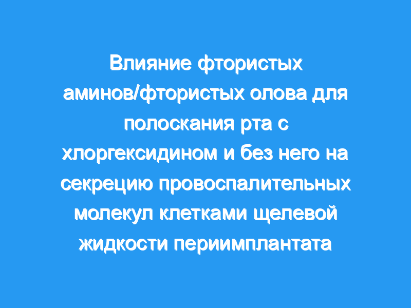Пациенты с зубными имплантатами нуждаются в оптимальном контроле зубного налета. Периимплантит — это воспаление мягких и твердых тканей вокруг имплантатов, характеризующееся потерей костной массы, опосредованной провоспалительными молекулами, такими как IL-1beta, PGE(2), фактор роста эндотелия сосудов (VEGF). Целью данного исследования было оценить влияние фторида амина/фторида олова (AmF-SnF(2)) против хлоргексидина 0,12% (CHX) в сочетании с Am-SnF(2) на секрецию IL-1beta, PGE(2) и EGF клетками щелевой периимплантационной жидкости.