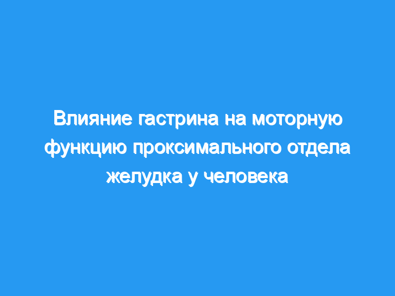 Настоящее исследование было проведено для изучения влияния гастрина на моторные и сенсорные функции проксимального отдела желудка.