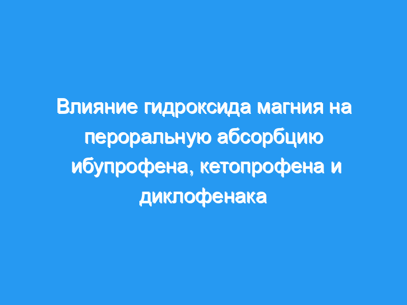 1. Влияние гидроксида магния на пероральную абсорбцию ибупрофена, кетопрофена и диклофенака было исследовано в двух рандомизированных перекрестных исследованиях, оба из которых состояли из двух фаз.
