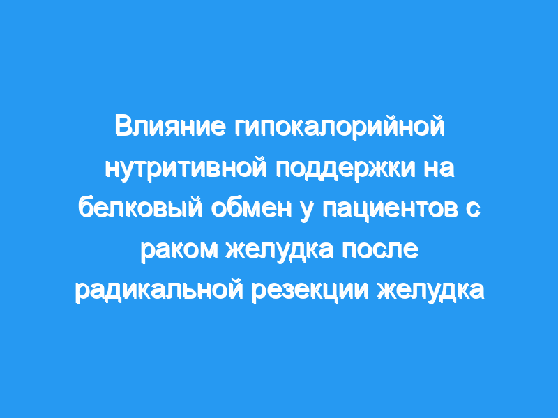 В этом исследовании 17 пациентов с распространенным раком желудка были рандомизированы в 3 группы для изучения изменений белкового обмена и азотосберегающего эффекта как гипо-, так и гиперкалорийного питания после радикальной резекции желудка.