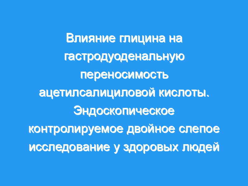 В рандомизированном двойном слепом исследовании у 20 здоровых добровольцев, получавших эндоскоп верхних отделов желудочно-кишечного тракта, оценивали переносимость гастродуоденальной суточной дозы 500 мг ацетилсалициловой кислоты (ASA, CAS 50-78-2) в комбинации с 250 мг глицина (CAS 56-40-6) (Годамед) и 500 мг ASA без добавления глицина.