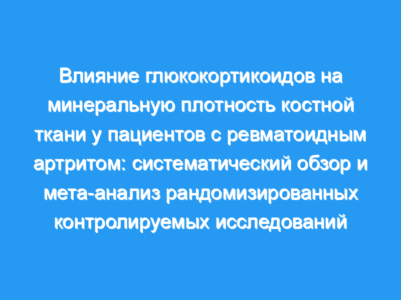 Мы определили 7 исследований и включили ранее неопубликованные данные. Исследования были аналогичны в отношении исследуемой популяции и вмешательства. Стандартная средняя разница (SMD) в изменении МПКТ от 0 до 24 месяцев составила -0,02 (95%ДИ -0,16, 0,12) в поясничном отделе позвоночника и -0,11 (95% ДИ -0,25, 0,02) в бедре (оба доказательства высокого качества) между пациентами, получавшими преднизолон/преднизолон или нет. Полнота данных в некоторых исследованиях была низкой, сопутствующее лечение РА различалось в разных исследованиях, и различия в использовании противоостеопоротических препаратов, возможно, повлияли на результаты. Однако анализ чувствительности, исключающий исследования, в которых участники использовали либо наиболее, либо наименее эффективное сопутствующее лечение РА, либо применяли антиостеопоротическую терапию, не изменил оценки.