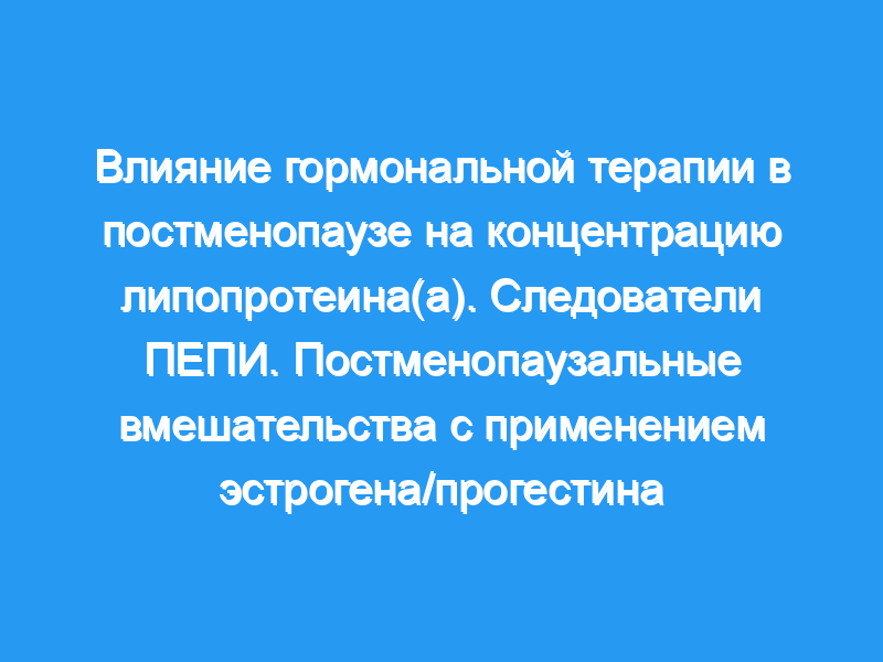 Сообщалось, что гормональная терапия в постменопаузе снижает уровень липопротеина (Лп)(а) в перекрестных исследованиях и небольших или краткосрочных лонгитюдных исследованиях. Мы сообщаем о результатах крупного проспективного плацебо-контролируемого клинического исследования, которое позволяет широко охарактеризовать эти эффекты для четырех режимов гормональной терапии. Методы и результат: Исследование эстроген/прогестиновых вмешательств в постменопаузе представляло собой 3-летнее плацебо-контролируемое рандомизированное клиническое исследование для оценки влияния гормональных режимов на факторы риска сердечно-сосудистых заболеваний у женщин в постменопаузе в возрасте от 45 до 65 лет. Активными режимами были конъюгированные лошадиные эстрогены в дозе 0,625 мг в день, отдельно или в комбинации с каждым из трех режимов прогестагенных агентов: медроксипрогестерона ацетат (MPA) в дозе 2,5 мг в день (т.е. непрерывный MPA), MPA в дозе 10 мг с 1 по 12 день (т.е. циклический MPA) и микронизированный прогестерон по 200 мг с 1 по 12 день. Уровни Лп(а) в плазме крови измеряли на исходном уровне (n = 366), через 12 месяцев (n = 354) и 36 месяцев (n = 342). Назначение гормональной терапии привело к снижению концентрации Лп(а) в среднем на 17-23% по сравнению с плацебо (P<,.0001), которое сохранялось в течение 3 лет наблюдения. Никаких существенных различий между четырьмя активными ветвями не наблюдалось. Изменения уровня ЛП(а), связанные с гормональной терапией, положительно коррелировали с изменениями уровня холестерина ЛПНП, общего холестерина, аполипопротеина В и фибриногена и были одинаковыми в подгруппах, определяемых возрастом, весом, этнической принадлежностью и предшествующим использованием гормонов.
