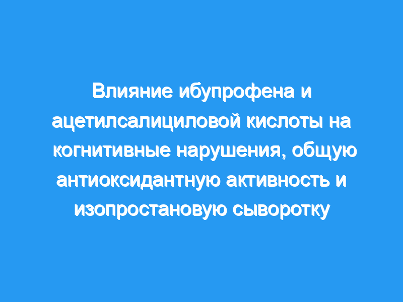 Существуют противоречивые исследования по профилактике болезни Альцгеймера с помощью нестероидных противовоспалительных препаратов (НПВП). Целью этого исследования была оценка влияния ибупрофена и ацетилсалициловой кислоты на когнитивные нарушения, общую антиоксидантную способность сыворотки (TAP) и изопростан (8-изо-PGF2alpha).