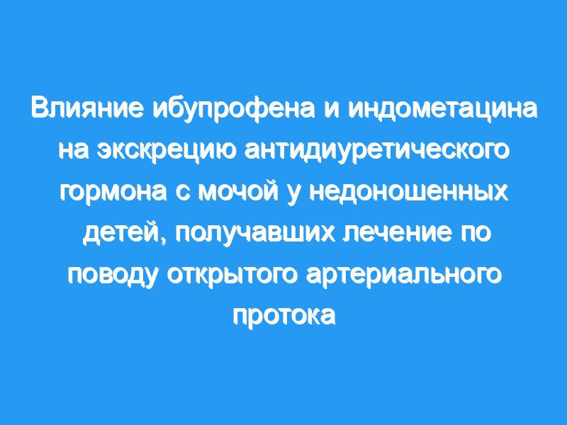 Сравнить влияние внутривенного введения ибупрофена и индометацина для лечения открытого артериального протока (PDA) на экскрецию антидиуретического гормона (ADH) с мочой как причины олигурии. План исследования: Сорок четыре недоношенных с респираторным дистресс-синдромом (<, or=34 недели беременности) с КПК получали либо ибупрофен (n = 22) в начальной дозе 10 мг/кг, затем две дозы по 5 мг/кг каждая через 24 и 48 ч, либо три дозы через 12-часовые интервалы индометацина (n = 24), 0,2 мг/кг, оба вводятся непрерывно в течение 15 мин. Экскрецию АДГ с мочой, диурез, сывороточный креатинин, натрий с мочой, фракционную экскрецию натрия и осмоляльность мочи измеряли до и после лечения.