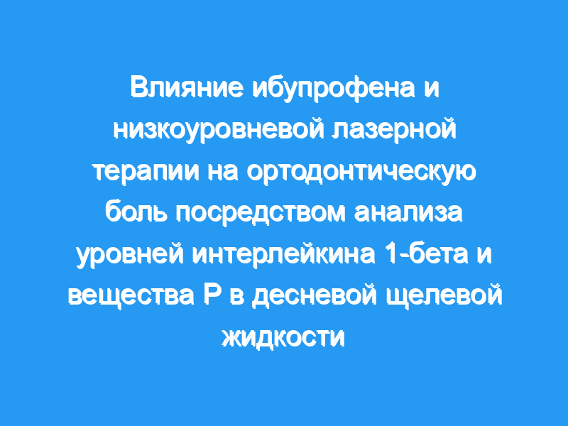 Целью данного исследования было сравнить эффекты ибупрофена и низкоуровневой лазерной терапии в облегчении ортодонтической боли, наблюдаемой после установки эластомерного сепаратора (ESP), посредством анализа уровней интерлейкина 1-бета (IL‑1β) и вещества P (SP) в десневой щелевой жидкости (GCF) и визуальная аналоговая шкала (VAS).