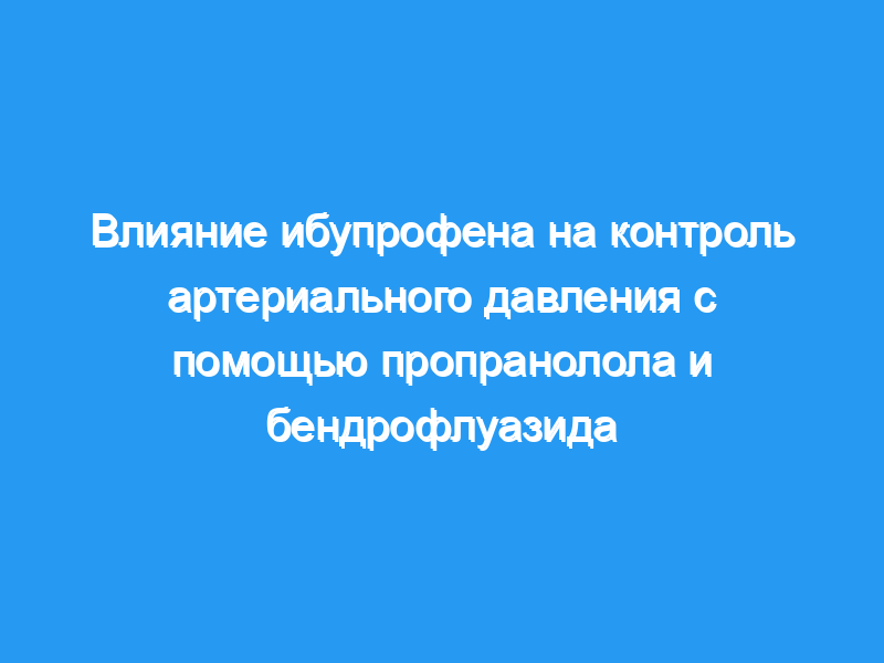 Это исследование предполагает, что ибупрофен можно назначать регулярно пациентам, получающим тиазиды или пропранолол, без потери контроля над антигипертензивным действием этих препаратов, но рекомендуется, чтобы пациенты находились под наблюдением на предмет возможного увеличения веса или повышения диастолического артериального давления.