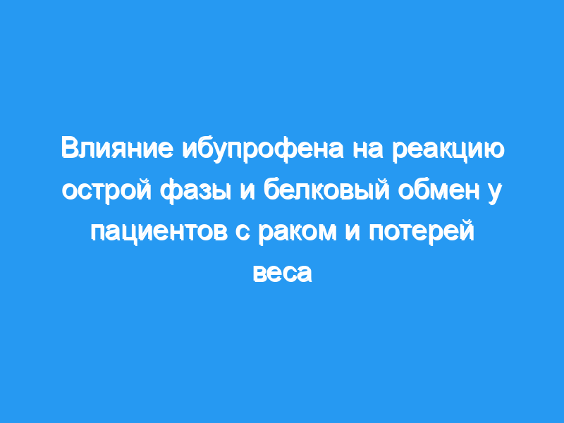 Эти результаты свидетельствуют о том, что кратковременное введение ибупрофена может ослабить ускоренную кинетику белка в организме и реакцию острой фазы у пациентов с прогрессирующим раком.