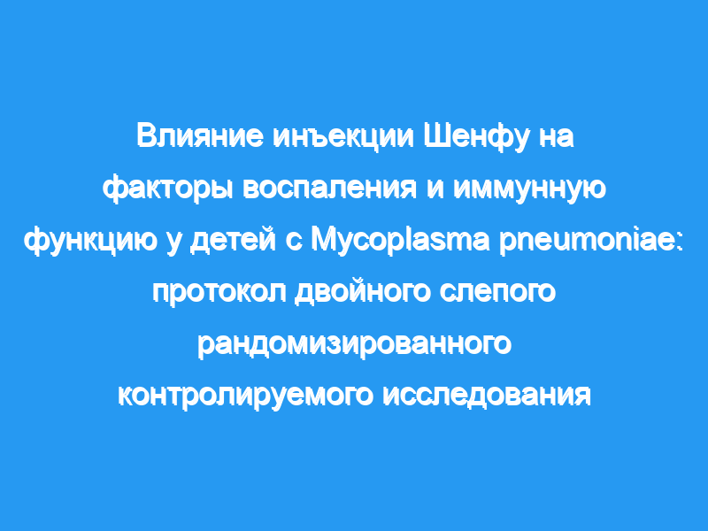 Mycoplasma pneumoniae (MP) является распространенным инфекционным респираторным заболеванием в педиатрии, и макролидные антибиотики являются оптимальным вариантом лечения. В последние годы наблюдается значительный рост резистентности этого возбудителя к макролидным антибиотикам, что делает клиническое лечение этого заболевания все более сложным. Инъекция Шенфу (SFI), инъекция растительного экстракта, обладает преимуществами улучшения иммунной функции, уменьшения воспалительной реакции, улучшения лечебного эффекта и сокращения течения заболевания при лечении детского МП. Тем не менее, отсутствуют строгие клинические исследования для оценки влияния SFI на факторы воспаления и иммунную функцию у детей с MP.