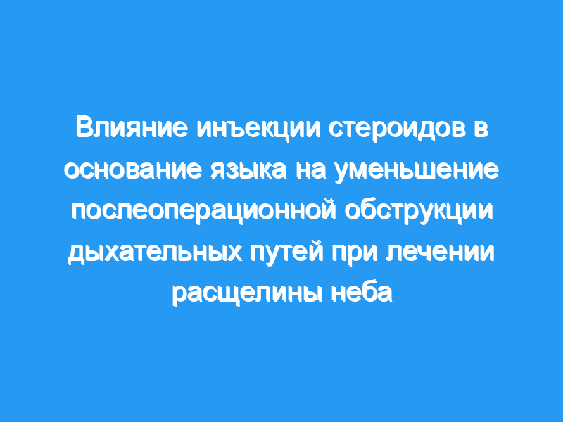 Местная инъекция стероидов в основание языка во время операции по удалению расщелины неба уменьшила частоту и тяжесть постпалатопластического UAO.