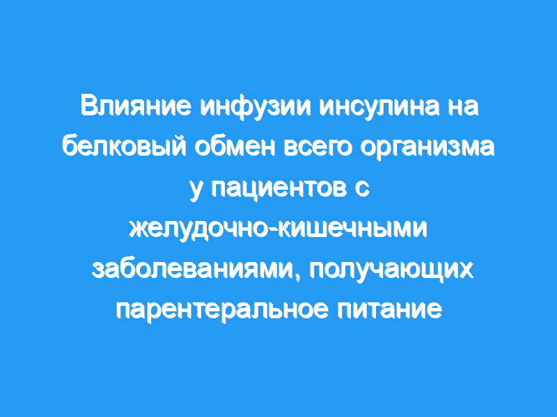 Влияние инфузии инсулина на белковый обмен всего организма было изучено у шести пациентов без диабета с желудочно-кишечными заболеваниями, получавших постоянное общее парентеральное питание, причем каждый пациент сам себе противопоказан.