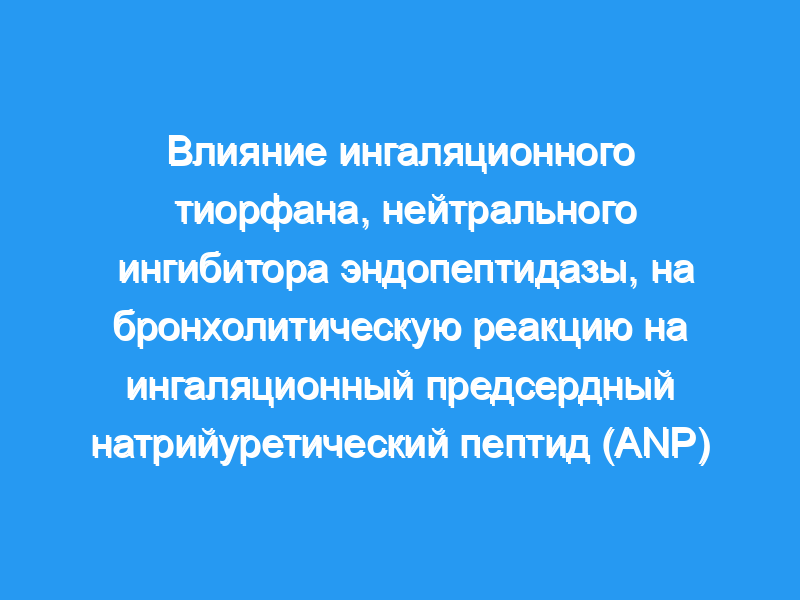 В рандомизированном двойном слепом плацебо-контролируемом перекрестном исследовании шесть пациентов с астмой (одна женщина) со средним (SD) возрастом 47,3 (3,8) года и объемом форсированного выдоха за одну секунду (ОФВ1) 1.91 (0.42) 1, 55 (3.8)% предсказывались, изучались. При скрининге у всех было показано, что ОФВ1 улучшилась по крайней мере на 25% после ингаляции сальбутамола. Во время пяти ознакомительных визитов пациенты получали либо тиорфан в дозе 1 мг (в 2 мл), затем ANP в дозе 5 мг или плацебо (физиологический раствор), либо плацебо (физиологический раствор) с последующим ANP (5 мг), плацебо или сальбутамол в дозе 5 мг. Спирометрические параметры измерялись после каждой ингаляции и затем в течение следующих двух часов.