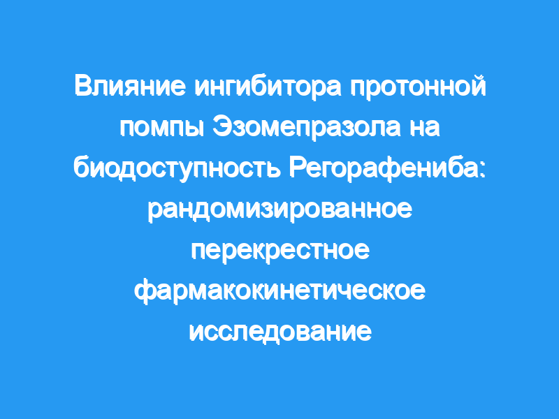 В этом перекрестном исследовании пациенты были рандомизированы в две группы последовательности, состоящие из трех этапов: прием регорафениба отдельно, регорафениба с сопутствующим эзомепразолом и регорафениба с эзомепразолом за 3 часа до начала.