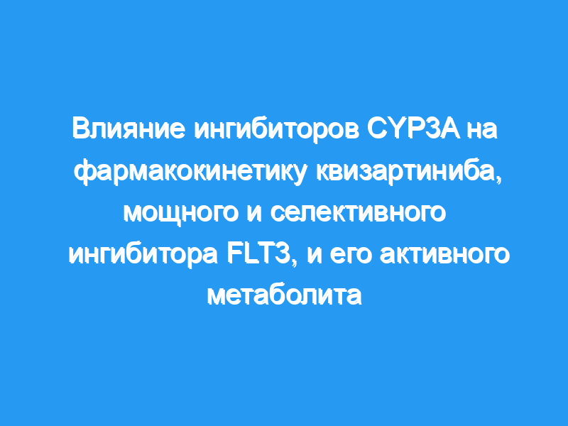 Квизартиниб является пероральным, высокоэффективным и селективным ингибитором следующего поколения FMS-подобной тирозинкиназы 3 (FLT3), который исследуется у пациентов с острым миелоидным лейкозом с мутацией FLT3 — внутренней тандемной дупликации. В этом исследовании лекарственного взаимодействия оценивалась фармакокинетика (ПК) квизартиниба при одновременном применении с сильными или умеренными ингибиторами цитохрома Р4503а (CYP3A).