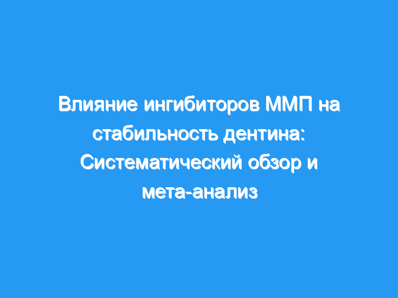 Целью данного исследования был систематический обзор литературы по исследованиям in vitro и ex vivo, в которых оценивалось влияние ингибиторов матриксной металлопротеиназы (ММП) во время процедуры адгезии на немедленную и долгосрочную прочность связи смола-дентин.