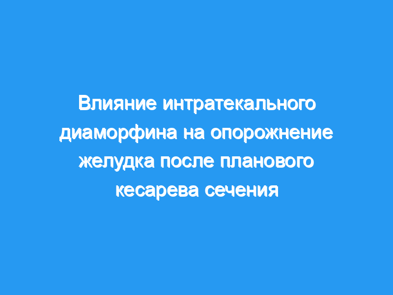 В этом исследовании изучалось, влияет ли интратекальный диаморфин на опорожнение желудка после планового кесарева сечения.