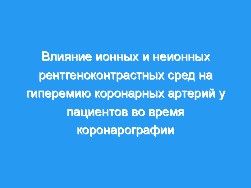 Целью этого исследования было сравнить дифференциальное влияние ионного высокоосмолярного меглюмина диатризоата, ионного низкоосмолярного иоксаглата меглюмина и неионного низкоосмолярного иогексола (все рентгеноконтрастные агенты) на скорость коронарного кровотока и гиперемические реакции во время диагностической коронарной ангиографии.
