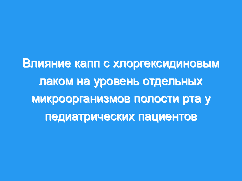 Влияние системы доставки хлоргексидинового лака на уровень отдельных микроорганизмов полости рта оценивали у педиатрических пациентов с активным кариесом в возрасте от 4 до 12 лет. Сорок шесть пациентов были включены в исследование, когда у них были множественные кариозные поверхности и уровни мутантных стрептококков (MS) в слюне выше 10 (4) колониеобразующих единиц (КОЕ) на миллилитр. Это исследование включало двойной слепой дизайн, и пациенты были случайным образом распределены либо в группу лечения хлоргексидином, либо в группу плацебо. Каппы с полной дугой, адаптированные к вакууму (0,02 дюйма полипропиленовый защитный материал) были изготовлены на заказ и покрыты изнутри либо 3,0%-ным хлоргексидиновым лаком, либо лаком плацебо. Были получены два образца слюны, стимулированных парафином, для культивирования перед обработкой лаком. Образцы слюны также брали сразу после лечения и один раз в месяц в течение трех месяцев после ношения каппы. В большинстве этих визитов для сбора слюны были установлены зубные протезы. Сообщается, что каппы носили в среднем 9,7 часов в сутки в течение примерно семи ночей 40 испытуемых (87%).