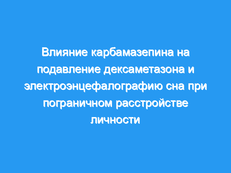 В этом исследовании мы исследовали влияние CBZ по сравнению с плацебо на DST и ЭЭГ сна в выборке из 20 пациентов с БЛД без сопутствующего МД. CBZ, вводимый в дозах, которые являются терапевтическими при эпилепсии и аффективных расстройствах, может оказывать влияние на DST и ЭЭГ сна при БЛД. CBZ значительно увеличивал уровень кортизола в плазме крови после приема дексаметазона.
