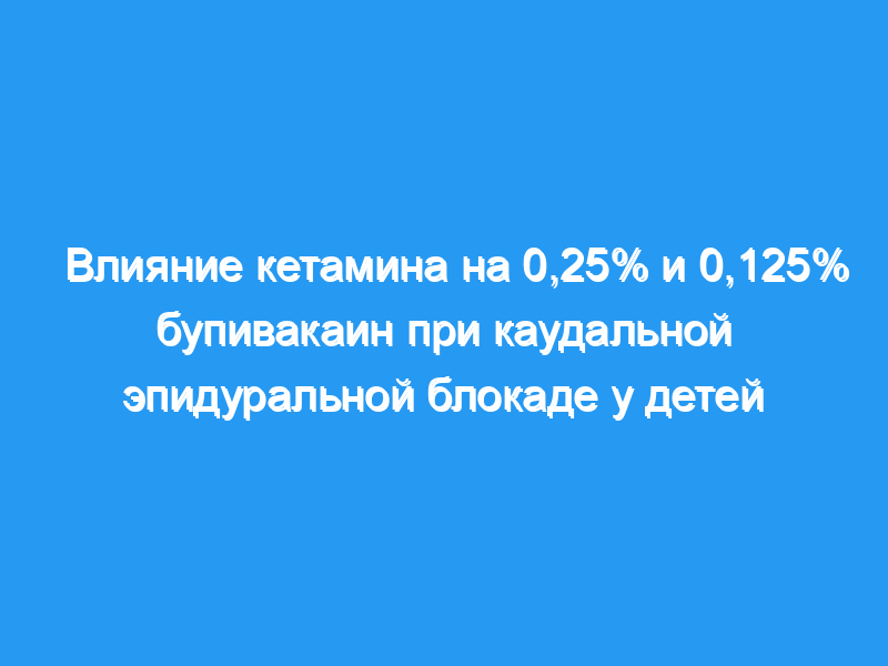 Группа А получила 1 мл/кг-1 0,125% бупивакаина с кетамином 0,5 мг/кг-1, а группа В получила 1 мл/кг-1 бупивакаина 0,25% с кетамином 0,5 мг/кг-1. Послеоперационную боль оценивали с помощью модифицированного объективного балла боли и назначали анальгезию, если этот балл превышал fou.