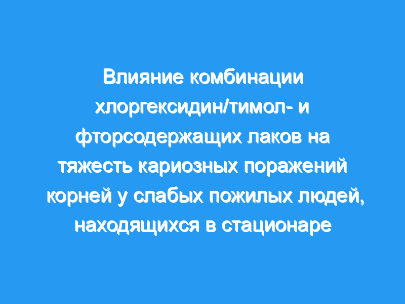 Сравнить клинические эффекты фторсодержащего лака (Fluor-Protector) в сочетании с хлоргексидинсодержащим лаком (Cervitec) на существующие кариозные поражения корней у группы слабых пожилых пациентов.