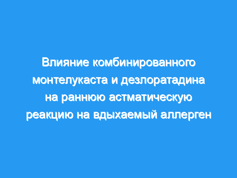 Ранний ответ на вдыхаемый аллерген не изменился после терапии дезлоратадином и частично подавлялся при терапии монтелукастом. Комбинация дезлоратадина и монтелукаста обеспечивала превосходящую эффективность любого блокатора, применяемого отдельно. Необходимы исследования возможных механизмов усиленного ингибирования.