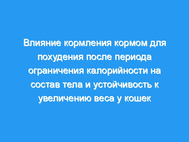 Во время испытания 1 кошки из групп 2 и 3 потеряли значительно больше веса, чем кошки из группы 1. Во время испытания 2 кошки потеряли значительное количество массы тела и жировой массы, но сохранили мышечную массу тела во время фазы снижения веса и продолжали терять массу тела и жировой массы, но набрал мышечную массу тела на этапе поддержания веса. Оценка метаболомных данных показала, что жировой обмен был улучшен по сравнению с исходным уровнем у кошек, которых кормили тестируемым кормом. Выводы и клиническая значимость: Результаты показали, что кормление кошек с избыточным весом тестируемым кормом приводило к потере веса и улучшению состояния тела на этапе поддержания веса, возможно, потому, что состав корма улучшал энергетический обмен.