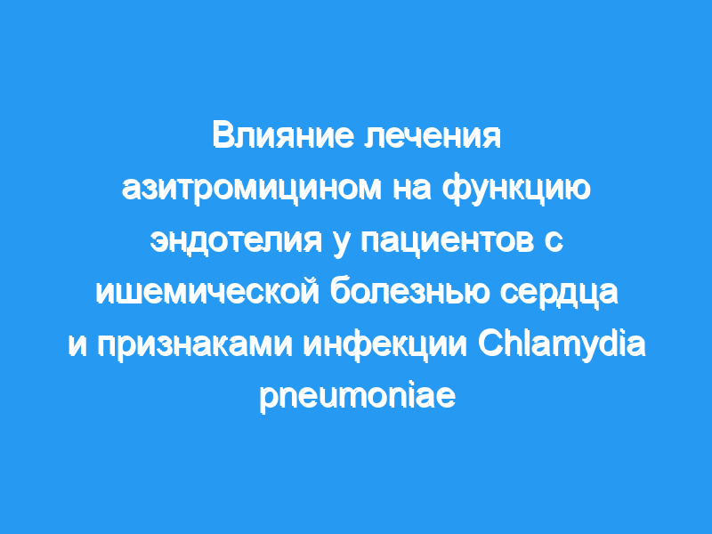 Наши результаты показывают, что лечение азитромицином оказывает благоприятное влияние на функцию эндотелия у пациентов с документированной ишемической болезнью сердца и признаками инфекции ХПН независимо от уровня титра антител. Вопрос о том, приведет ли это благоприятное действие лечения антибиотиками к благоприятному влиянию на атерогенез и сердечные события, требует дальнейшего изучения.