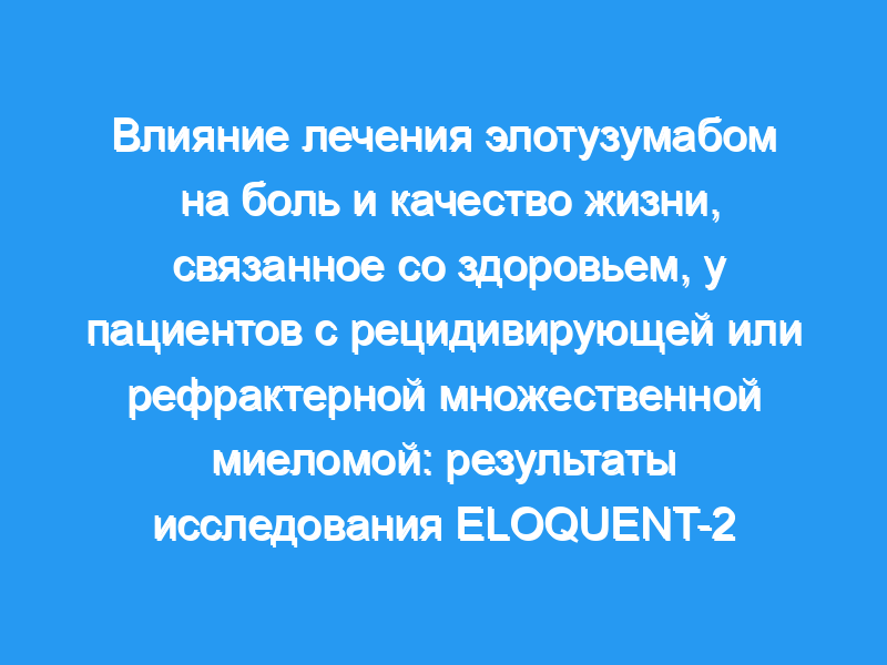 Эти результаты показывают, что ранее сообщалось об улучшении выживаемости без прогрессирования и скорости ответа при применении элотузумаба. достигается без ущерба для HRQoL, который сохраняется с течением времени.