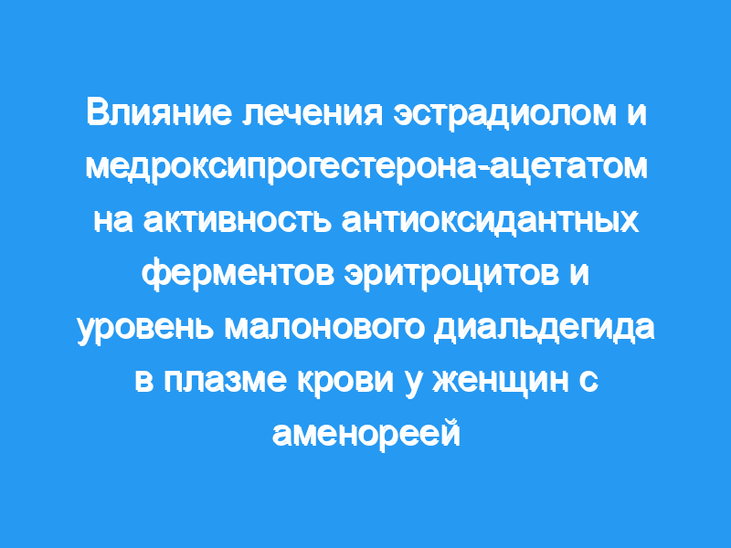 Уровни 17 бета-эстрадиола (E2) и малонового диальдегида в плазме крови и активность антиоксидантных ферментов эритроцитов [супероксиддисмутазы, каталазы и глутатионпероксидазы (GSH-Px)] были оценены у 20 здоровых женщин с эуменореей (EW) на 7-й день менструального цикла и у 48 пациенток с вторичной гипоталамической аменореей. (AP) (время 0). Пациентов случайным образом разделили на четыре подгруппы по 12 человек и лечили трансдермальным препаратом Е2 в течение 30 дней (подгруппа А), пероральным медроксипрогестерона-ацетатом в течение 30 дней (подгруппа В) и трансдермальным препаратом Е2 плюс медроксипрогестерона-ацетат в течение 30 дней (подгруппа С). Четвертая подгруппа выступала в качестве контраста.