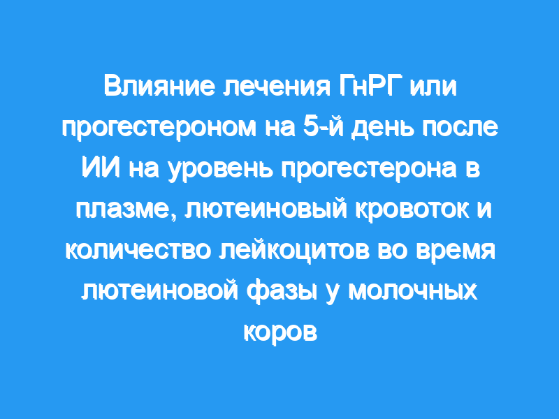 В заключение, наши результаты показывают, что лечение на 5-й день после ИИ PRID уменьшало последующую васкуляризацию CL, в то время как лечение ГнРГ увеличивало концентрацию прогестерона в плазме на 12-й день после ИИ, хотя было выявлено влияние осеменения быка на уровень прогестерона в плазме.