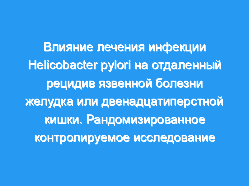 Определить влияние лечения инфекции Helicobacter pylori на рецидив язвенной болезни желудка и двенадцатиперстной кишки. Дизайн: Наблюдение до 2 лет за пациентами с зажившими язвами, которые участвовали в рандомизированных контролируемых исследованиях.