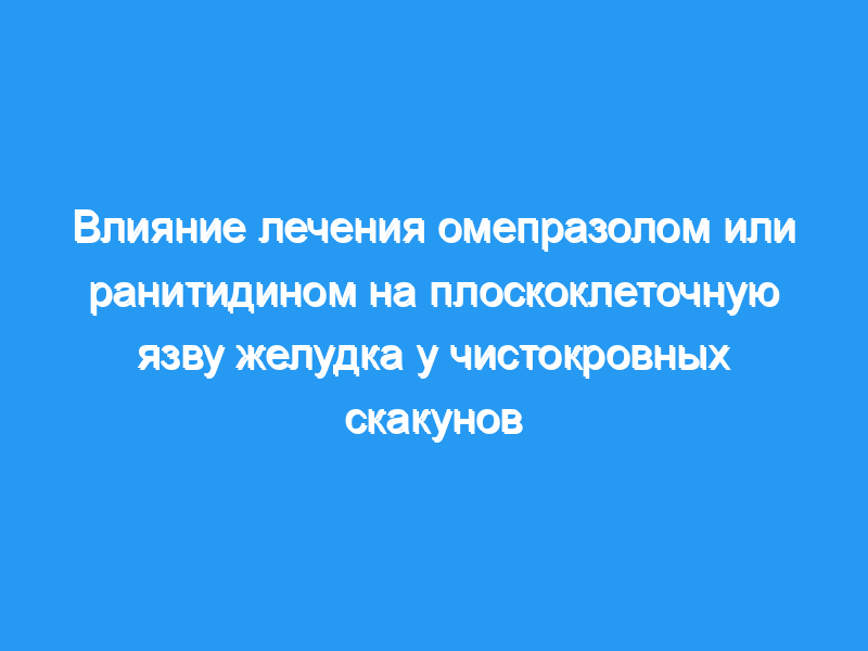 После первых 28 дней лечения уменьшение тяжести язвы было значительно больше после лечения омепразолом, чем после лечения ранитидином. Тяжесть язвы значительно уменьшилась у лошадей 3-й группы после 14 дней лечения омепразолом. Прекращение приема омепразола привело к ухудшению показателей язвенной болезни, однако показатели язвенной болезни по завершении исследования были меньше, чем на 0-й день. У лошадей, получавших омепразол после 28 дней лечения ранитидином, наблюдалось дальнейшее снижение тяжести язвы. Выводы и клиническая значимость: Омепразол был более эффективен, чем ранитидин, в лечении плоскоклеточных язв желудка у чистокровных лошадей в скаковых тренировках. Улучшение было обнаружено через 14 дней и сохранялось у большинства лошадей 2-й группы по крайней мере в течение 28 дней после прекращения лечения омепразолом.