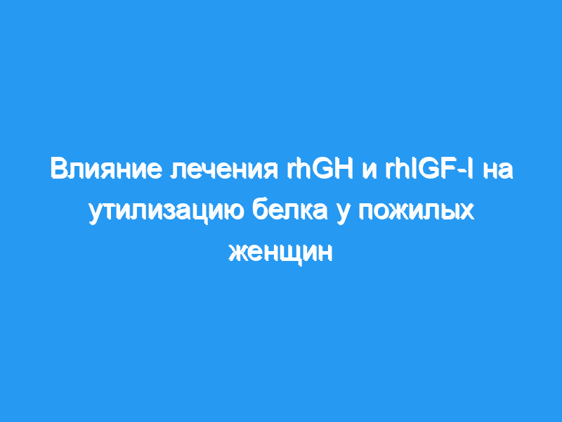 Для оценки влияния рекомбинантного гормона роста человека (rhGH) и рекомбинантного человеческого инсулиноподобного фактора роста I (rhIGF-I) на утилизацию белка 14 женщин в возрасте 66-82 лет были приглашены принять участие в исследованиях азотистого баланса (n = 14), обмена белка в организме (n = 14) и синтез мышечного белка (n = 8). Их изучали как за 1 неделю до, так и в течение последней недели 1-месячного режима, к которому они были рандомизированы, либо 0,025 мг rhGH /кг один раз в день, либо rhIGF-I в дозе 0,015 (низкий), 0,03 (средний) или 0,06 (высокий) мг/кг дважды dail.